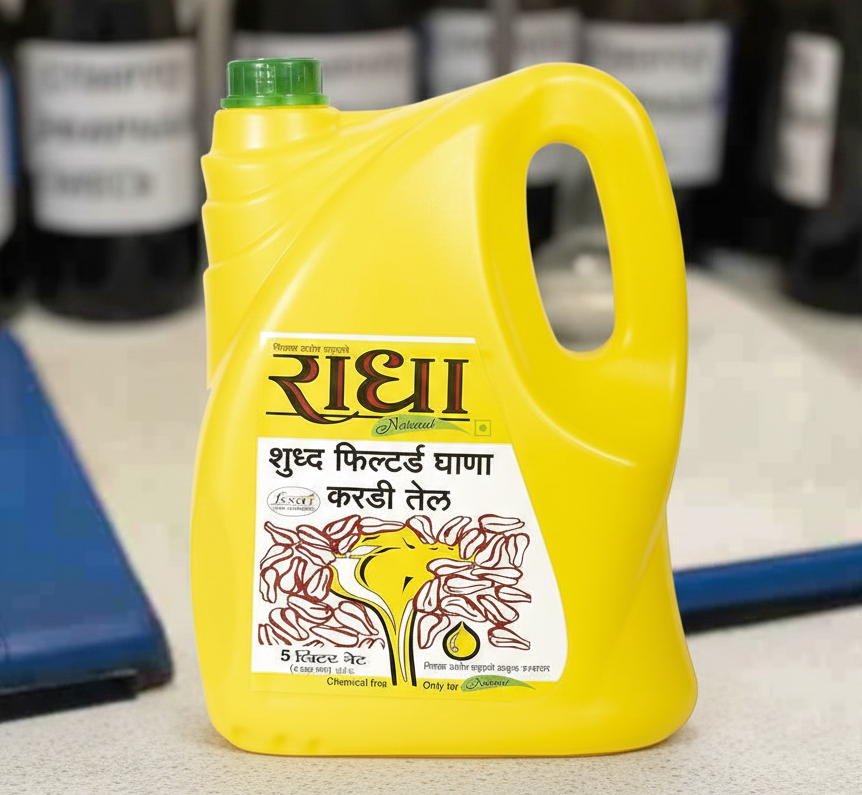 Radha Natural Safflower (Kardi) Oil is produced from carefully selected premium safflower seeds using traditional expeller-pressed methods. The result is a pure, light, and natural edible oil that retains its nutrition, aroma, and taste, meeting high-quality standards for households and trade partners alike.
